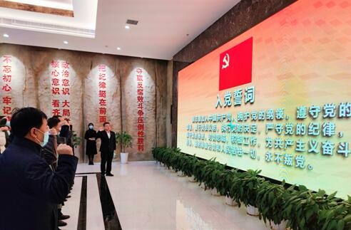 黨委書記冉龍彬帶領(lǐng)全體參觀人員重溫入黨誓詞