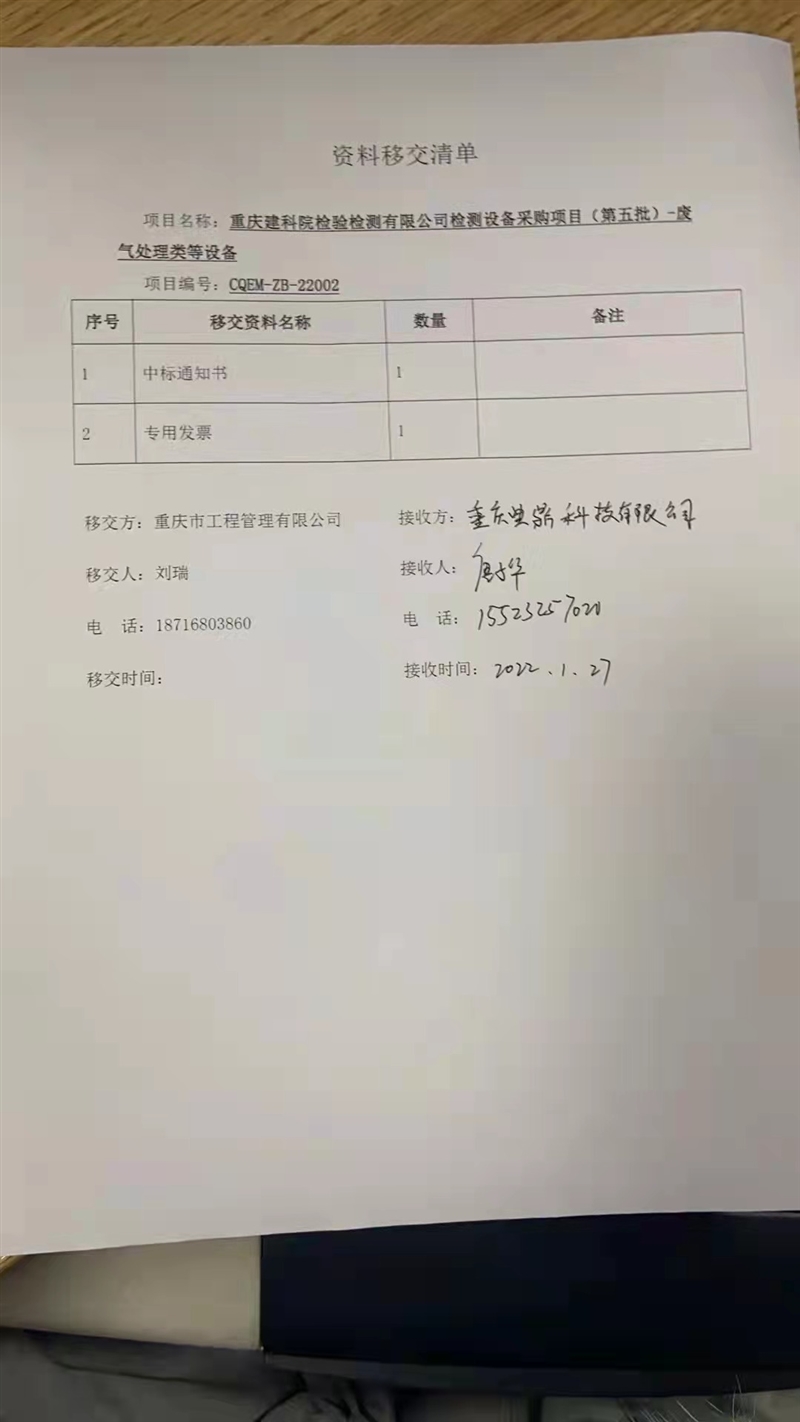 附:中標通知書掃描件和移交清單復印件