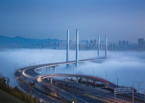 從“星際穿越”到“輕軌穿樓”再到“開往春天的列車”……重慶道橋隧建設(shè)從來不缺乏熱點話題,而當(dāng)橋都遇上霧都,每逢初晴云起之時,在逶迤秀麗的嘉陵江蔡家段,一場雙橋凌云飛架、車輛地鐵穿云而過的奇景就會上演。